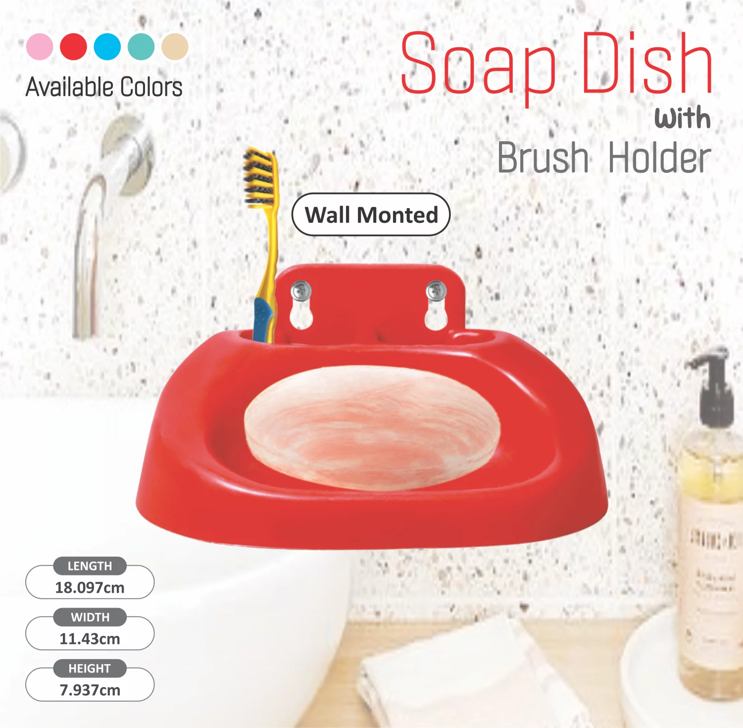 The Soap Dish with Brush Holder offers a convenient, all-in-one solution for organizing your bathroom essentials. Designed to be wall-mounted, this sturdy plastic soap dish keeps your soap elevated and dry, while the integrated toothbrush holder adds extra functionality, making it a space-saving addition to any bathroom. The deep dish design prevents soap from sliding off, and the slotted surface ensures proper drainage to extend the life of your soap. Available in a variety of vibrant colors, this soap dish and brush holder is easy to install and perfect for maintaining a clutter-free sink area.